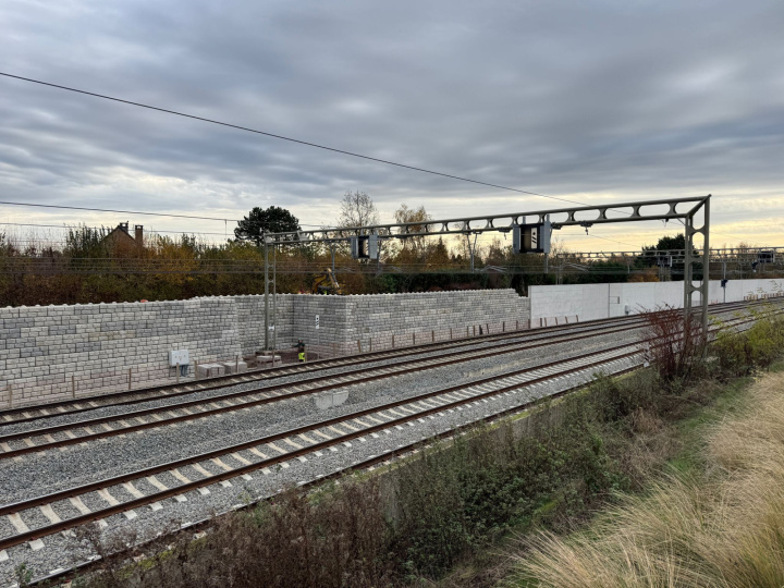 À Waterloo, le chantier entamé en 2019 continue de prendre forme. Près de 2.150 blocs Redi-Rock ont été fournis pour prolonger le mur de soutènement longeant le chemin de fer, dans la continuité directe de l’ouvrage installé il y a six ans.